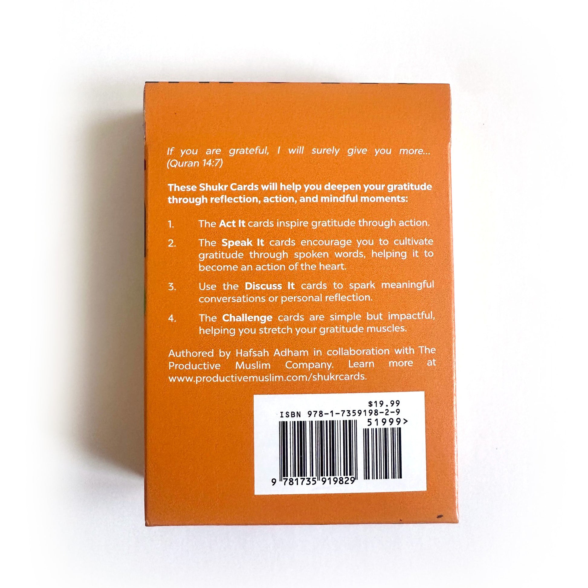 Bring gratitude to life with Productive Muslim Company Shukr Cards—a beautifully designed deck that helps you, your family, friends, or team reflect on and practice daily gratitude, inspired by timeless Islamic wisdom.