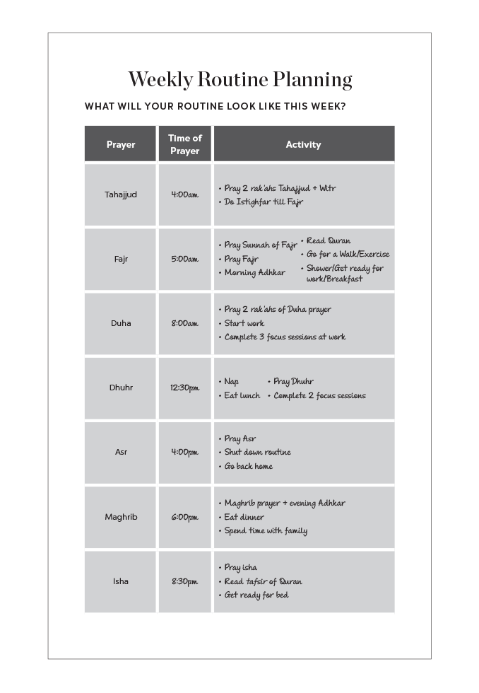Align your daily routine to the routine of Prophet Muhammad (peace be upon him).